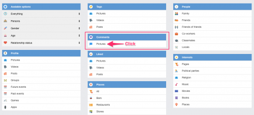 Click vào Pictures sẽ dẫn bạn đến kết quả tất cả các hình ảnh mà người này có comment vào, tuy nhiên nếu người này block bạn hoặc hình ảnh đó để ở chế độ giới hạn bạn bè mà bạn lại chưa phải là friend với người đăng ảnh thì sẽ không thấy comment nhé. Tuy nhiên bạn yên tâm, mấy người hay thả thính thường để “Public” không à.