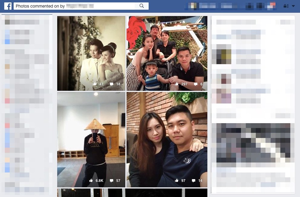 Tại trang kết quả này, bạn cứ cuộn trang tìm những hình ảnh muốn xem đối tượng đã comment, ví dụ như ảnh sau:
